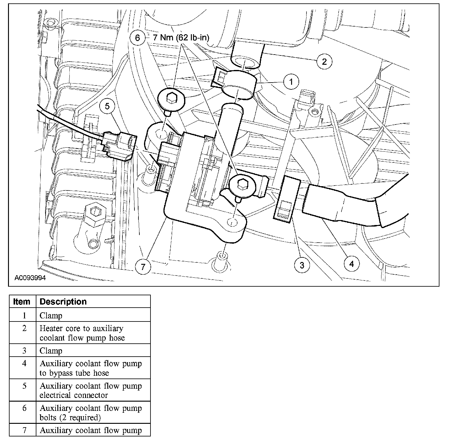 5. Disconnect the auxiliary coolant flow pump electrical connector.