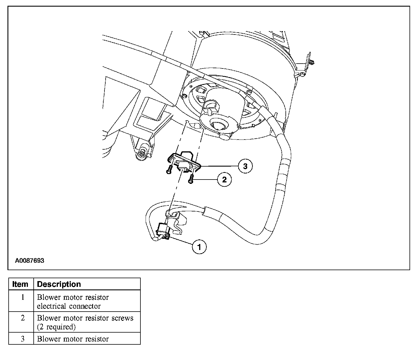 3. Remove the 2 screws and the blower motor resistor.