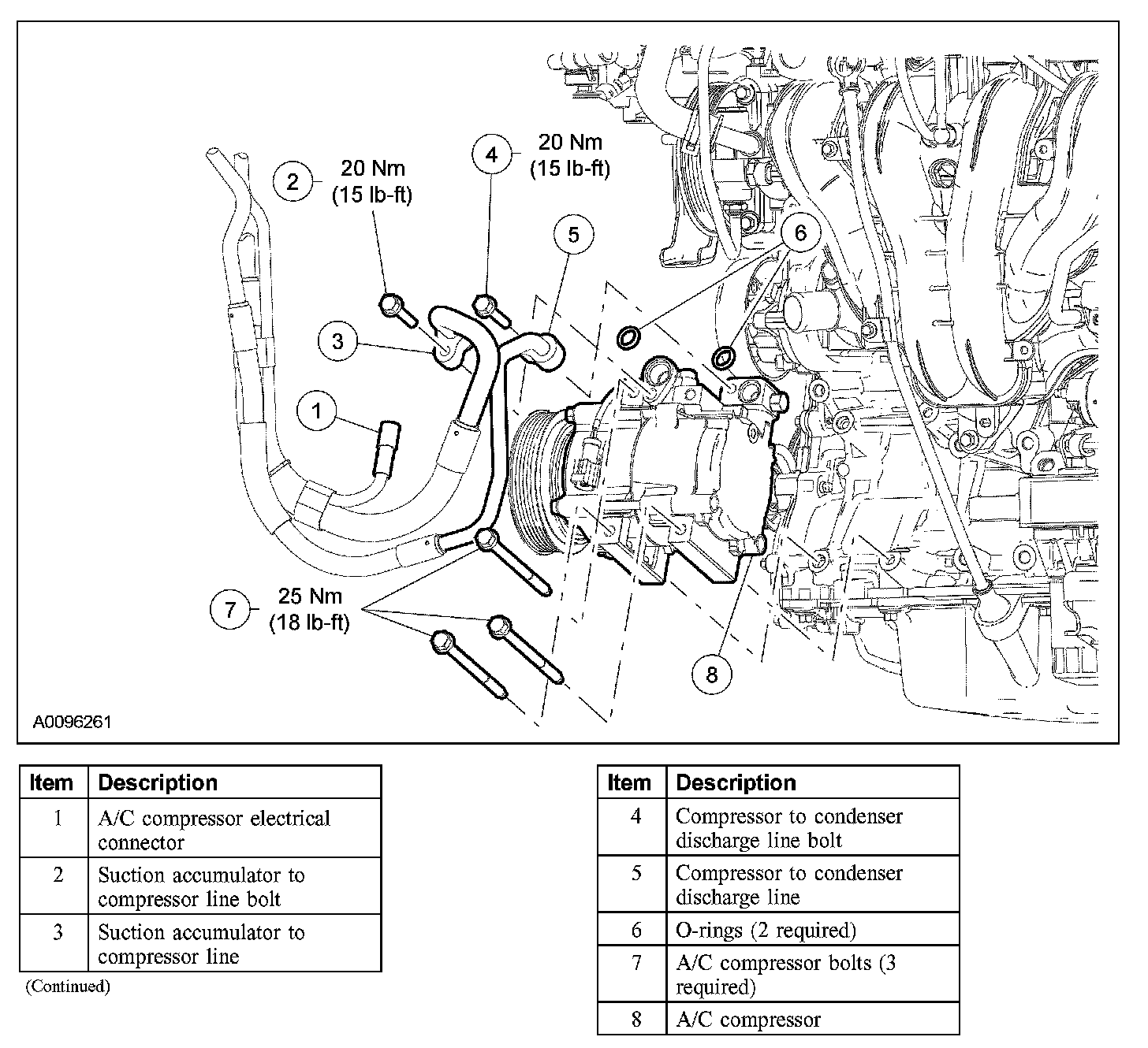 9. NOTE: New O-ring seals lubricated with clean mineral oil must be installed before connecting any A/C fitting which has been disconnected.