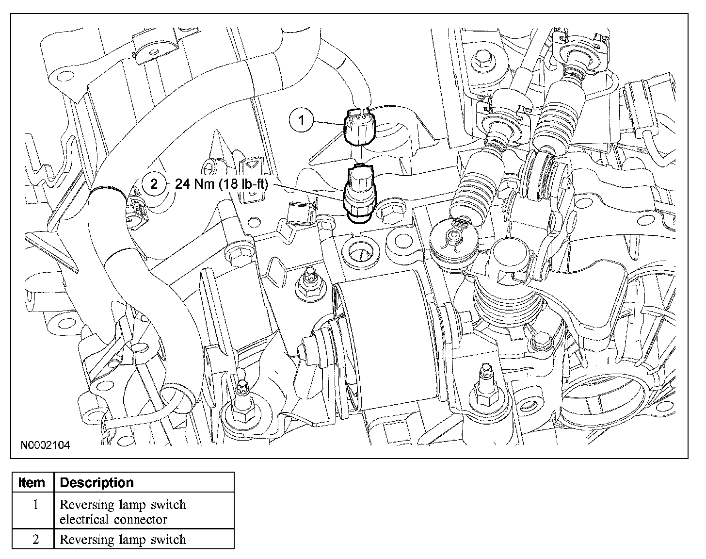 1. Disconnect the reversing lamp switch electrical connector.