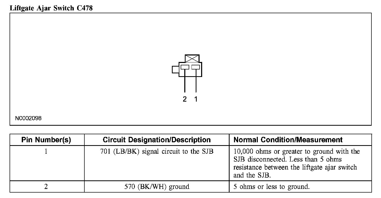 Liftgate Ajar Switch C478:
