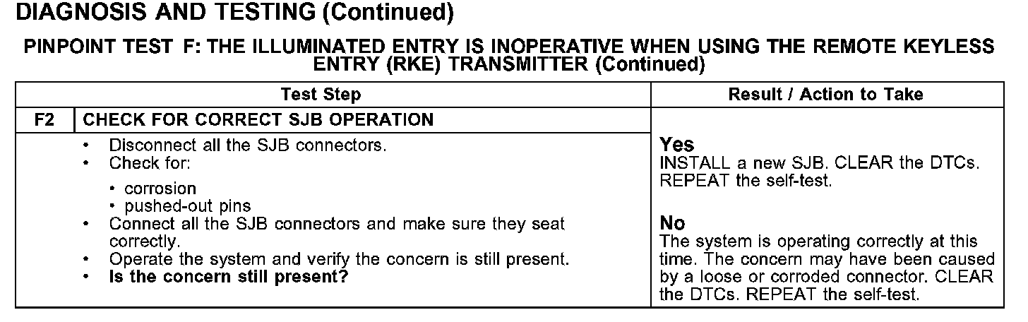 Test F: The Illuminated Entry Is Inoperative When Using The Remote Keyless Entry (RKE) Transmitter