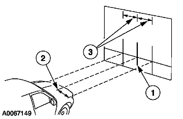 2 Measure from the center of the headlamp to the center line of the vehicle.
