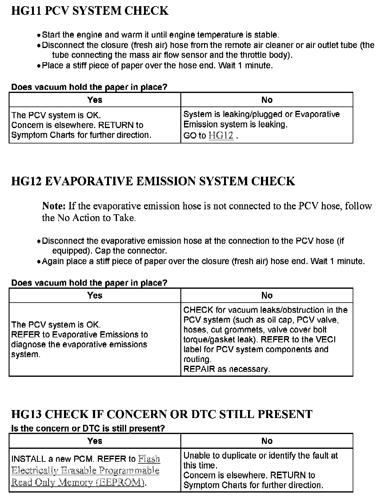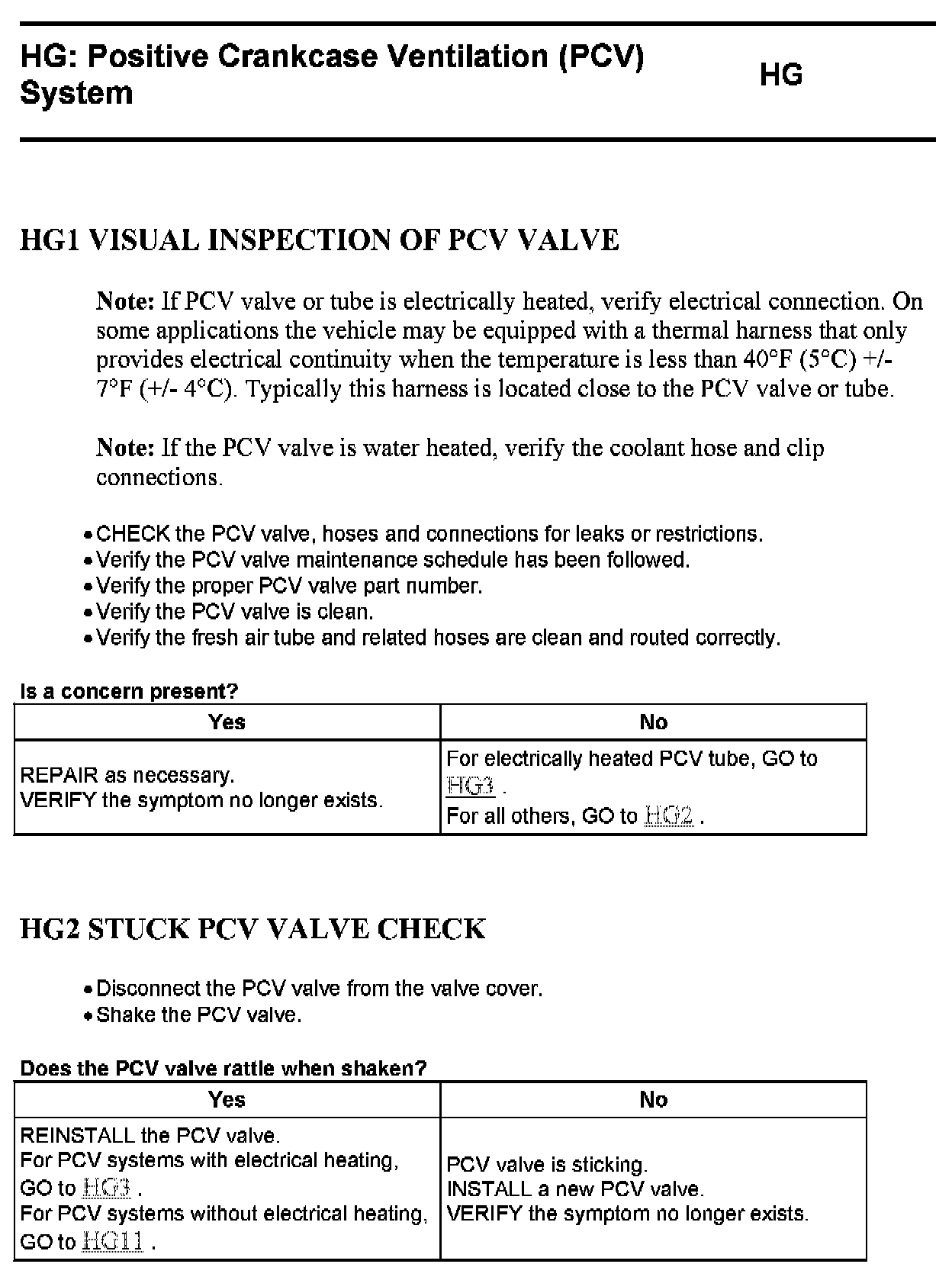 PINPOINT TEST HG: POSITIVE CRANKCASE VENTILATION (PCV) SYSTEM