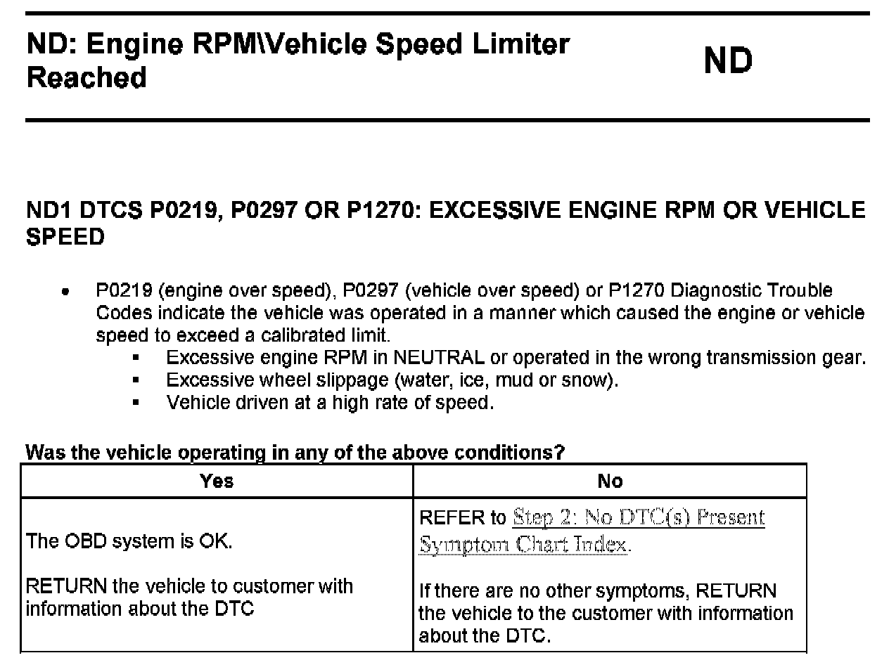 PINPOINT TEST ND: ENGINE RPM\VEHICLE SPEED LIMITER REACHED