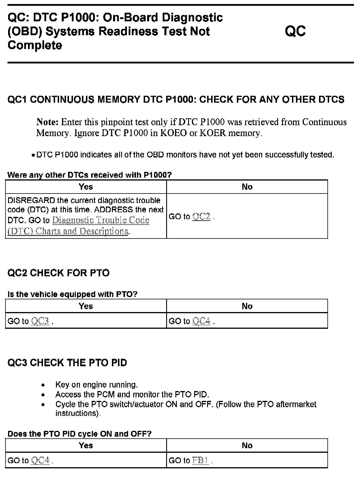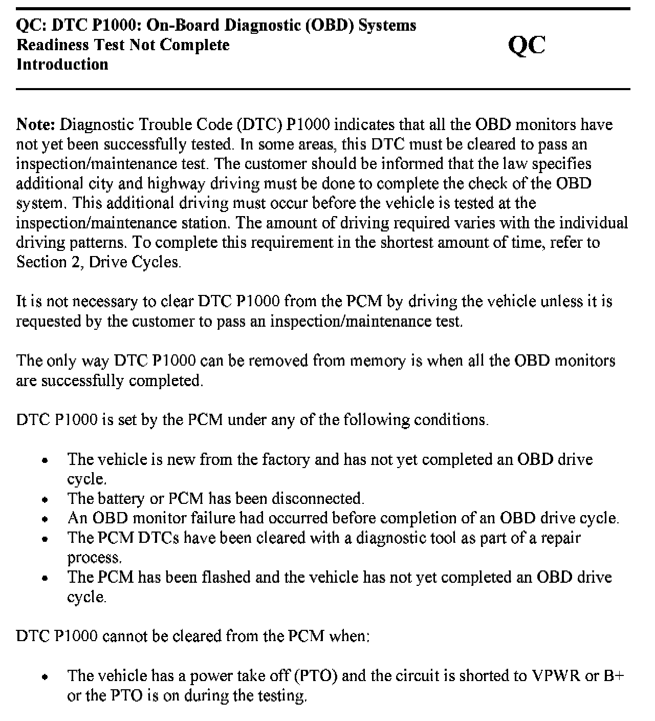 Tests QC: DTC P1000: On-Board Diagnostic (OBD) Systems Readiness Test Not Complete