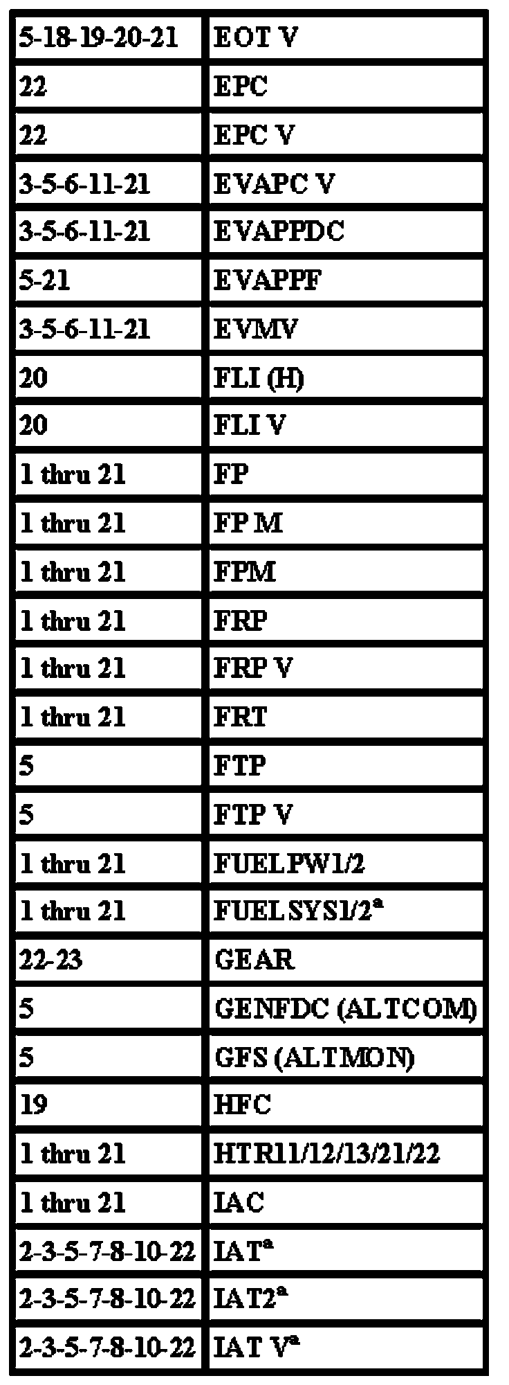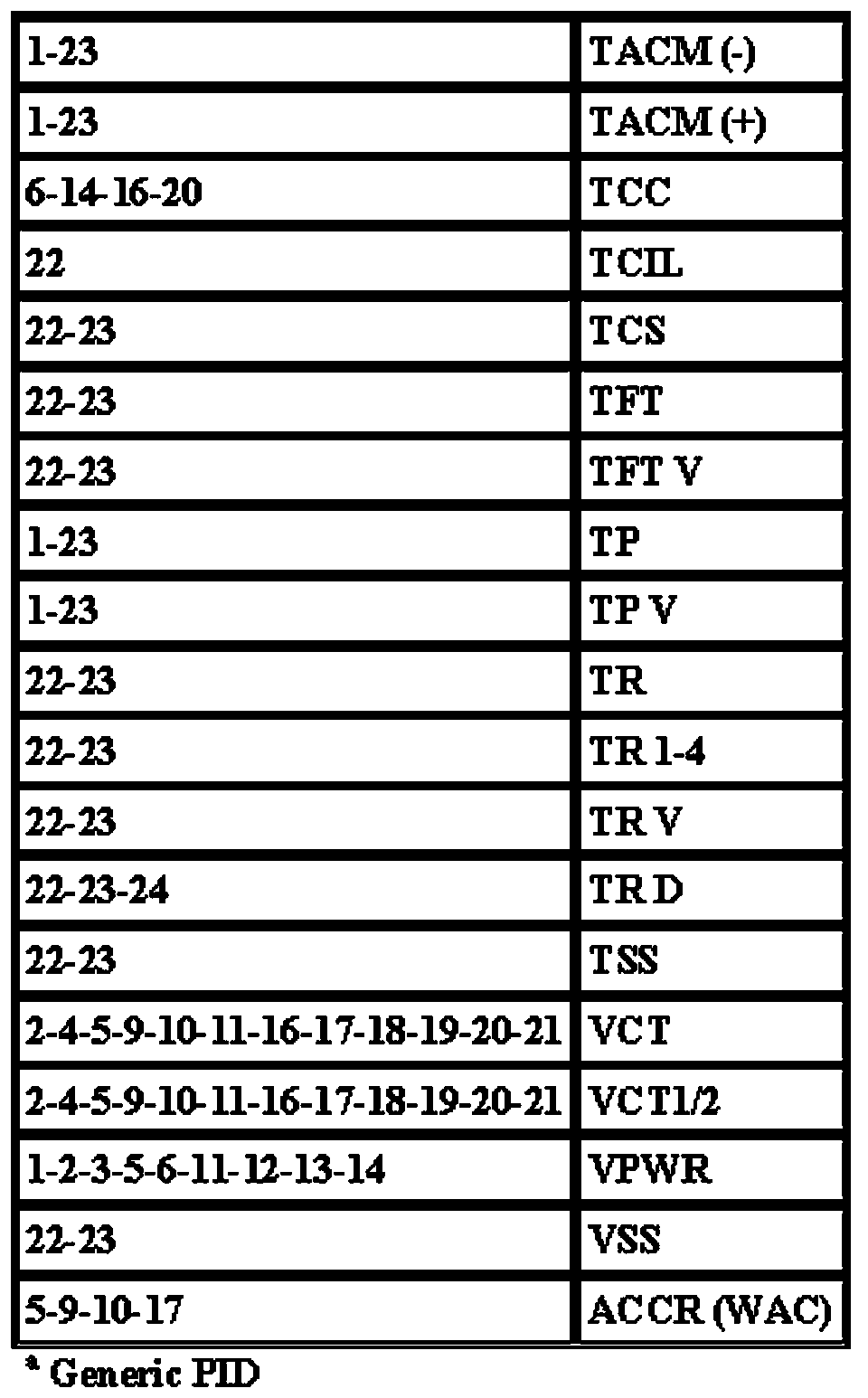 The following listing reflects PIDS and/or measured values which may reveal a possible concern within each system shown. Match the category number with the related PID/measured signal and go to the Typical Diagnostic Reference Value Charts.