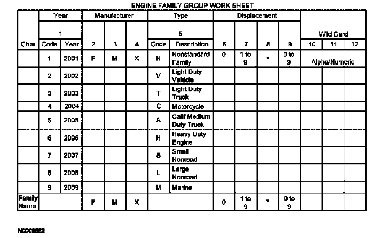 Manufacturers must use a standardized system for identifying their individual engine families. The system described below was developed by the Environmental Protection Agency (EPA) in 1991 to meet new regulatory requirements for 1994 and later model years.