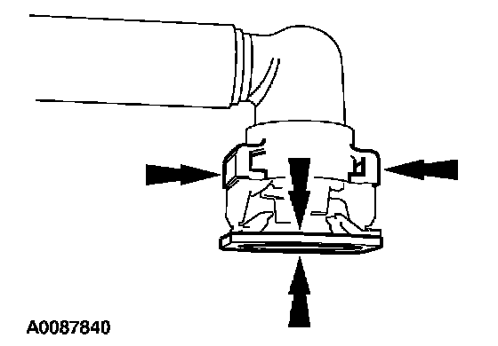 5. Squeeze the coupling opposite of the release tabs and pull to release the fuel vapor tube quick connect coupling from the EVAP canister.