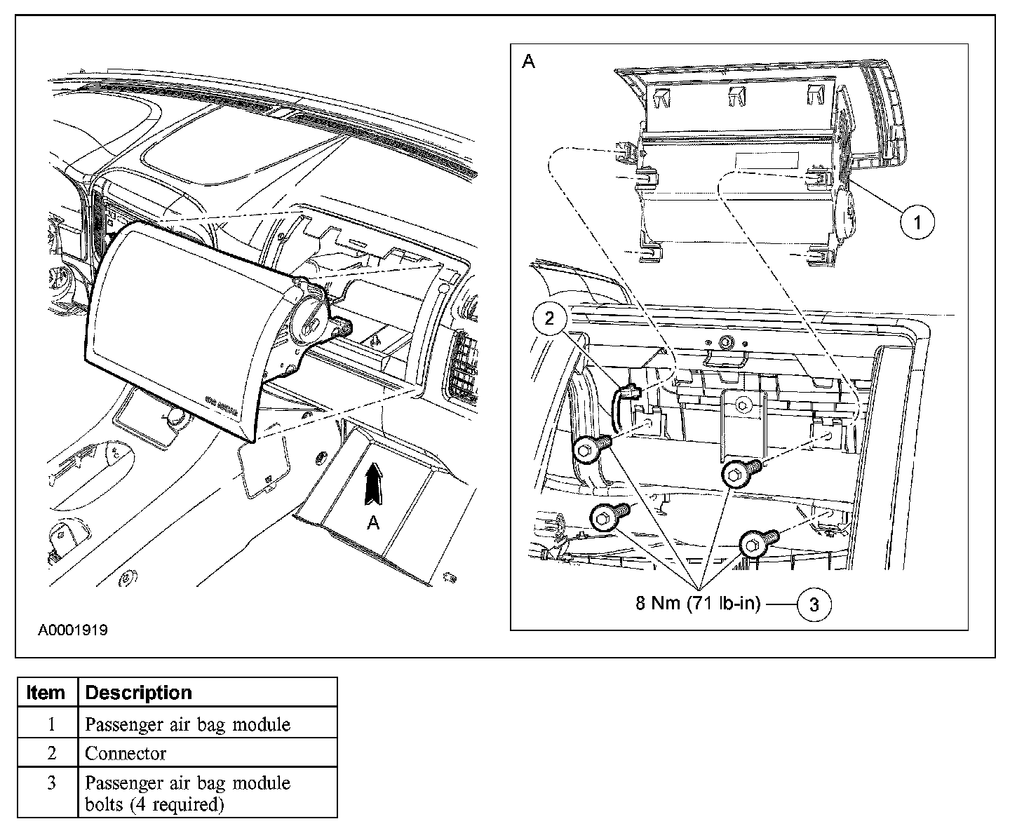 5. CAUTION: Do not handle the passenger air bag module by grabbing the edges of the deployment door.