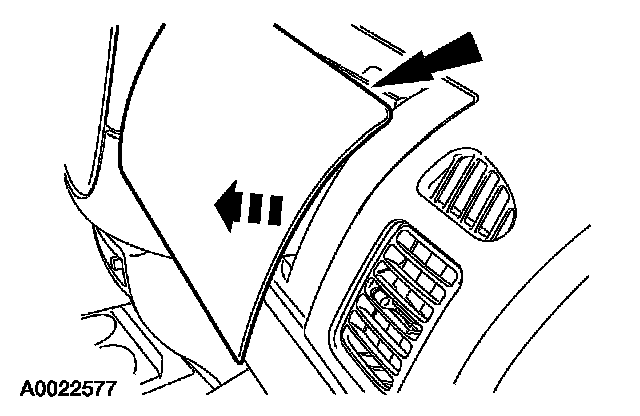 - With the alignment pins positioned to the instrument panel, push in, seating the top (top shown) and bottom deployment door retainers.