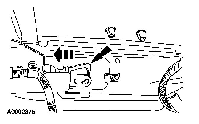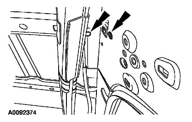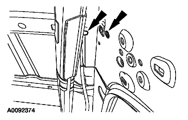 6. NOTE: If equipped with a moonroof and/or rear window wiper assembly, do not pinch the front moonroof drain hose and/or rear window washer solvent hose.