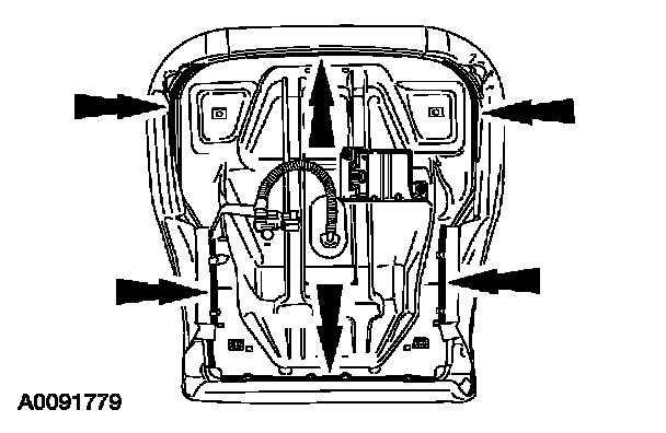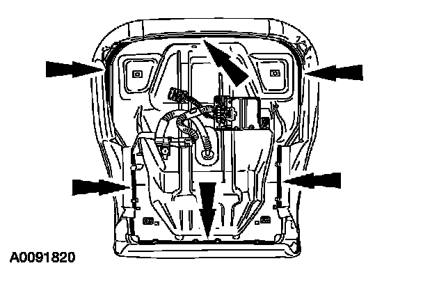 - Inspect the occupant classification sensor assembly, seat cushion pan and support assembly for any foreign objects before installing the occupant classification sensor assembly to the seat cushion pan. If any foreign objects are found, remove them. Failure to do so may result in personal injury, in the event of an air bag deployment.
