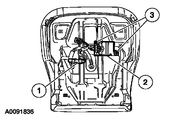 - Pull all the OCS components (hose, pressure sensor, wire harness, ECU and connectors) through the seat cushion pan opening.