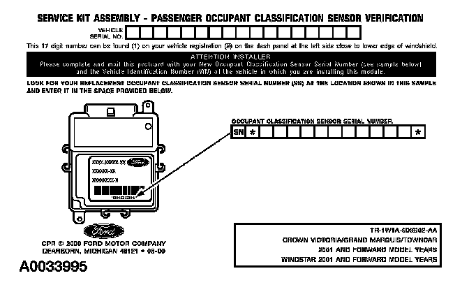 Fill out the necessary information on the occupant classification sensor traceability card and return it along with the complete inoperative occupant classification sensor to Ford Motor Company.