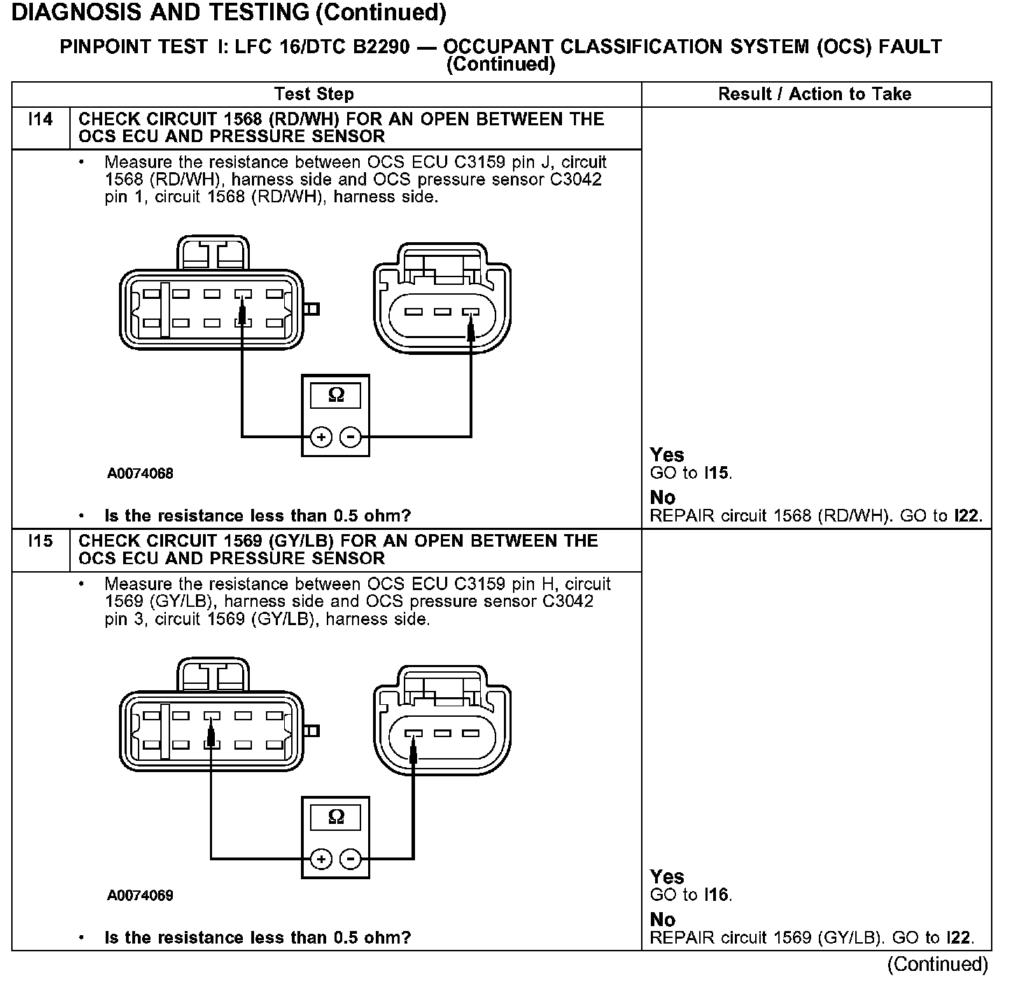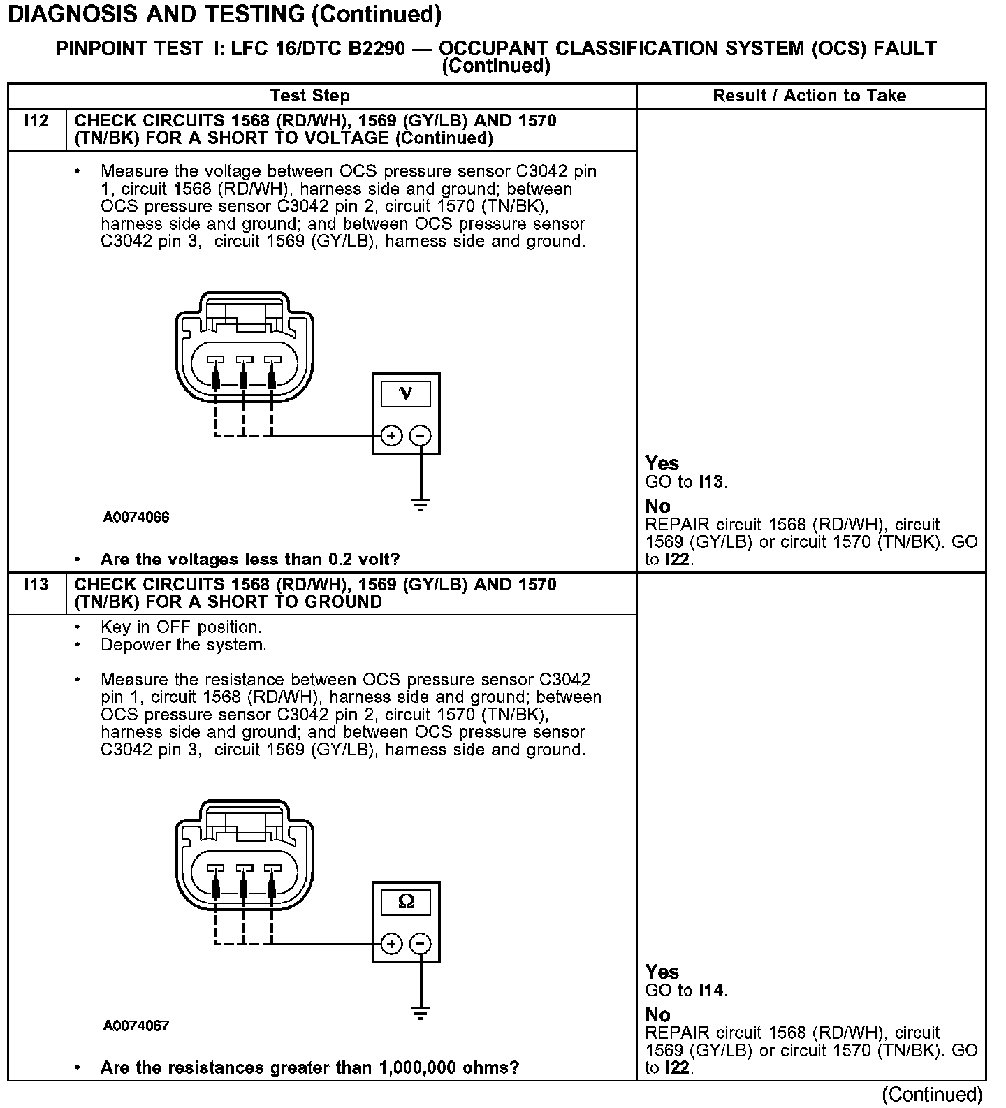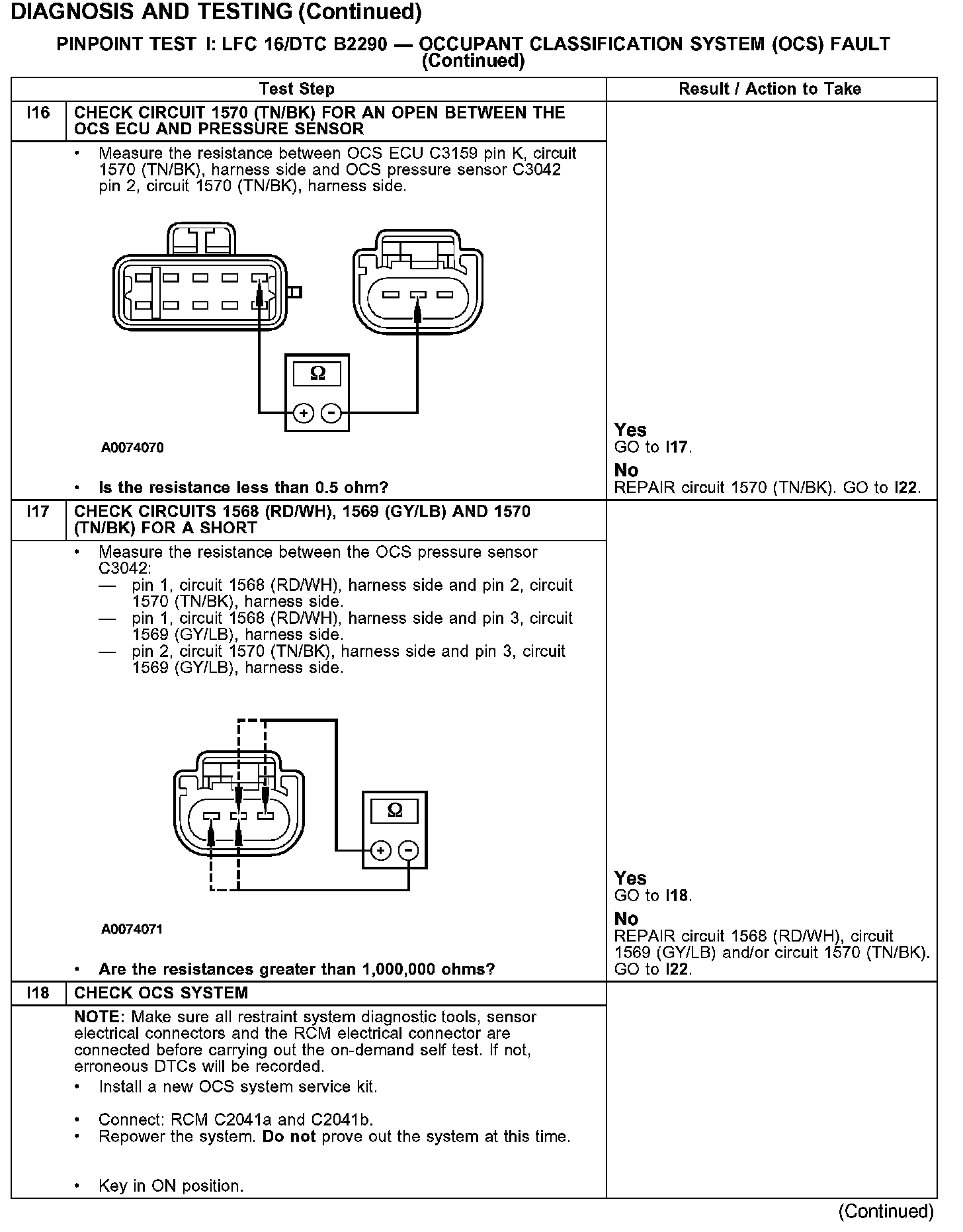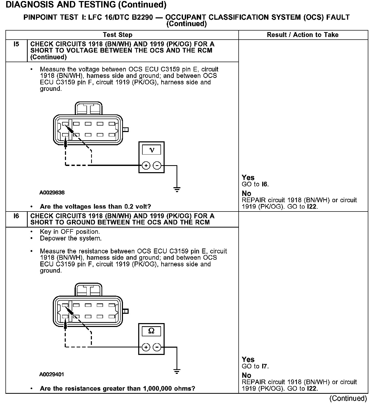 PINPOINT TEST I: LFC 16/DTC B2290 - OCCUPANT CLASSIFICATION SYSTEM (OCS) FAULTI1-I2: