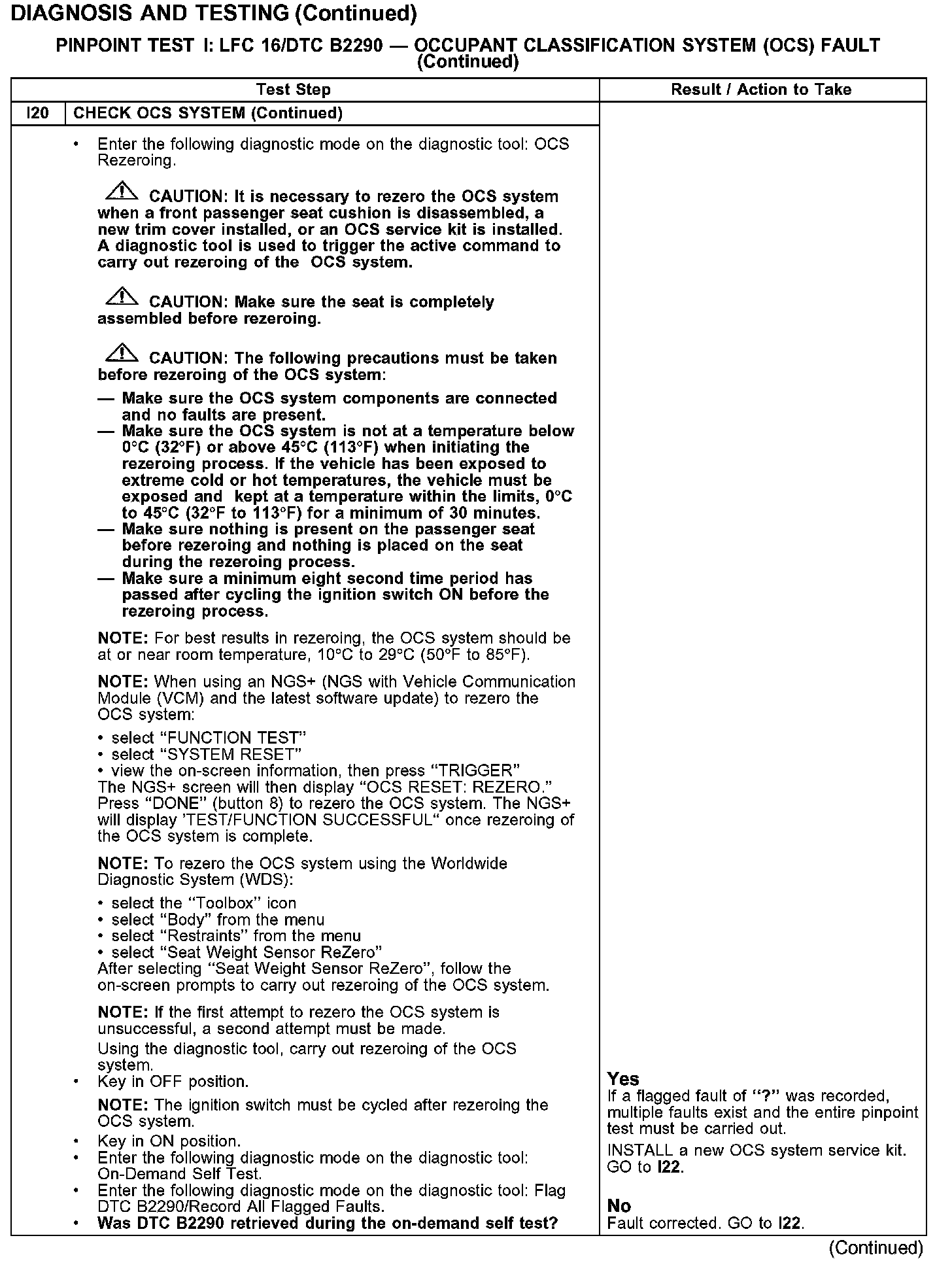 Test I: LFC 16/DTC B2290 - Occupant Classification System (OCS) Fault