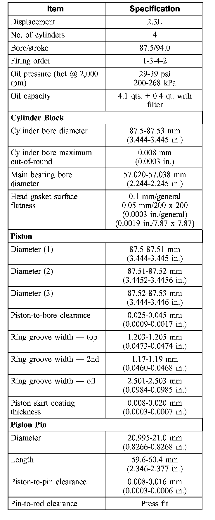 Mariner 2WD L4-2.3L VIN Z