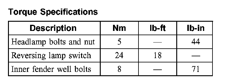 Torque Specifications: