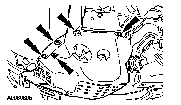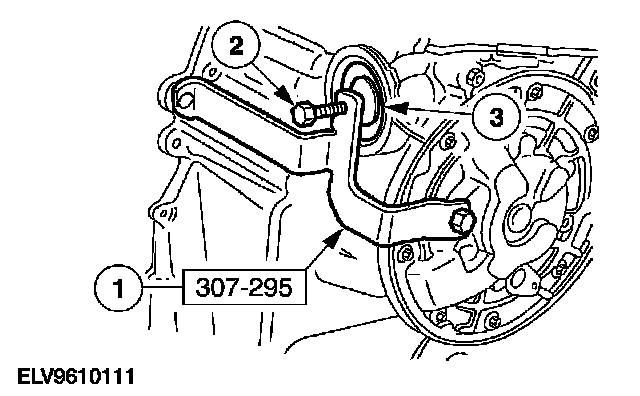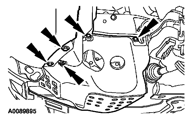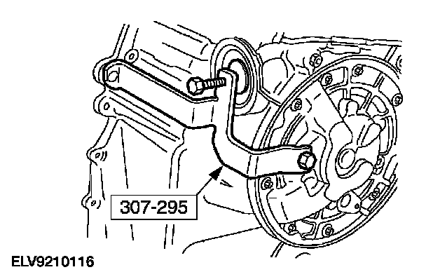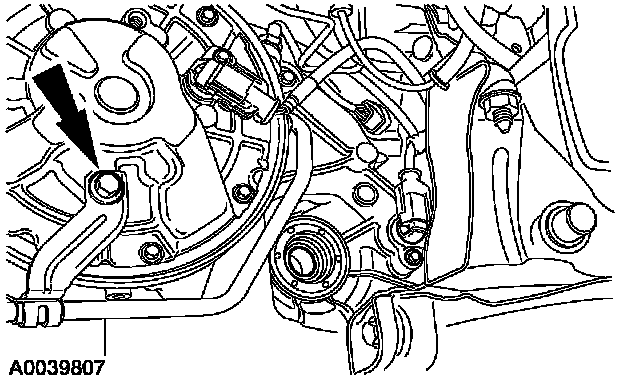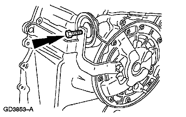 3. Remove the transmission fluid cooler line bracket and bolt and position it aside.