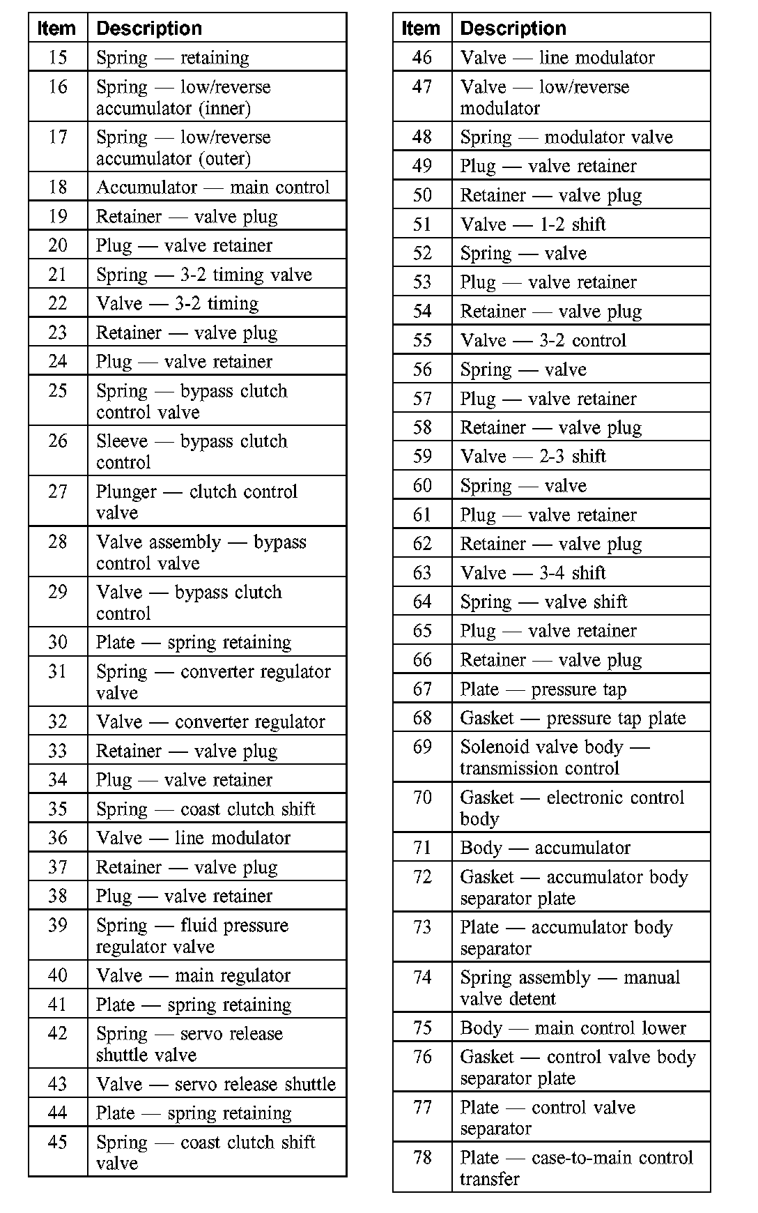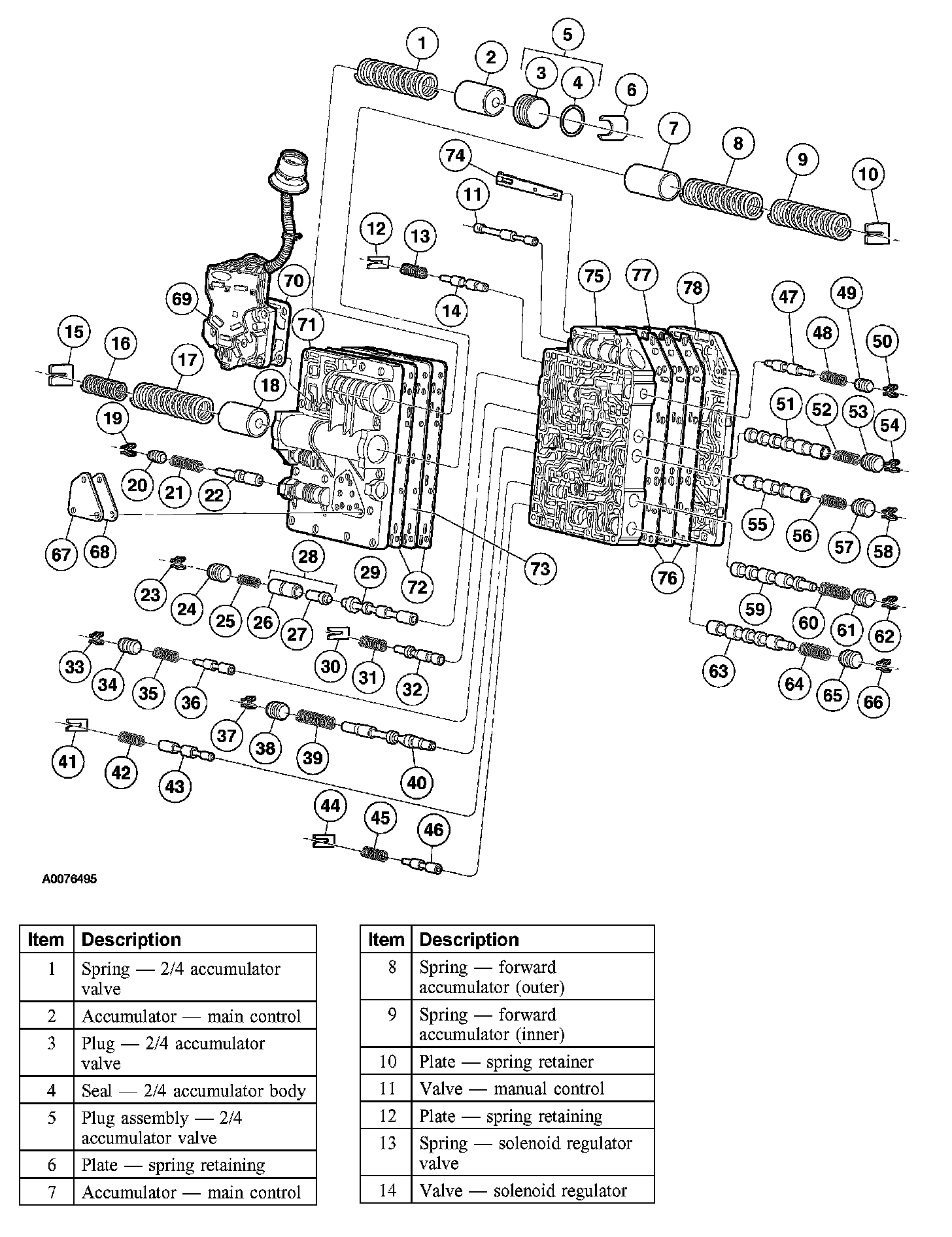 As necessary, disassemble the parts of the accumulator body and main control valve body assemblies.