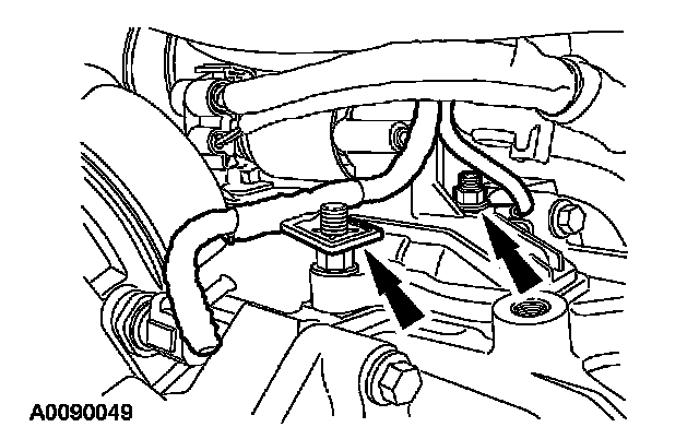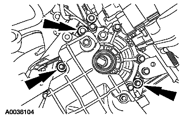 32. Remove the 3 bolts holding the transaxle front mount plate.