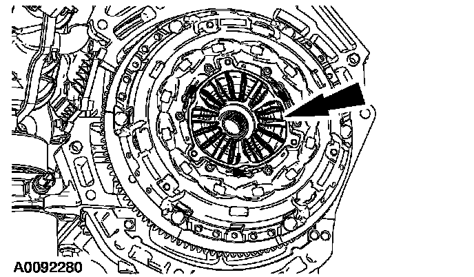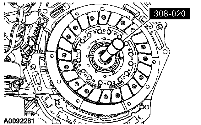1. Using the special tool, position the clutch disc on the flywheel.