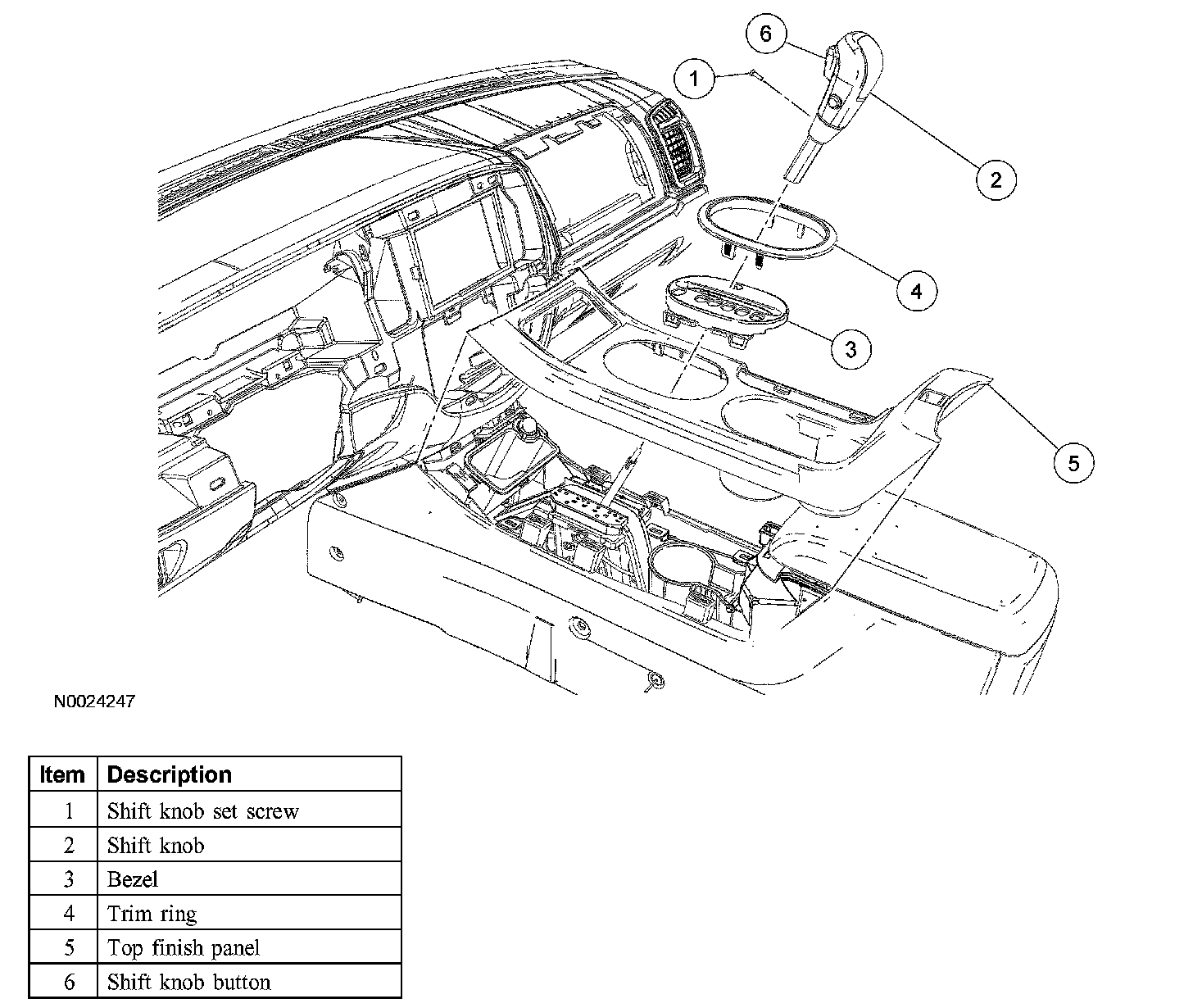 ^ To install the upper shift lever trim ring, orient the thick tab on the driver side front of the shifter and press into place.
