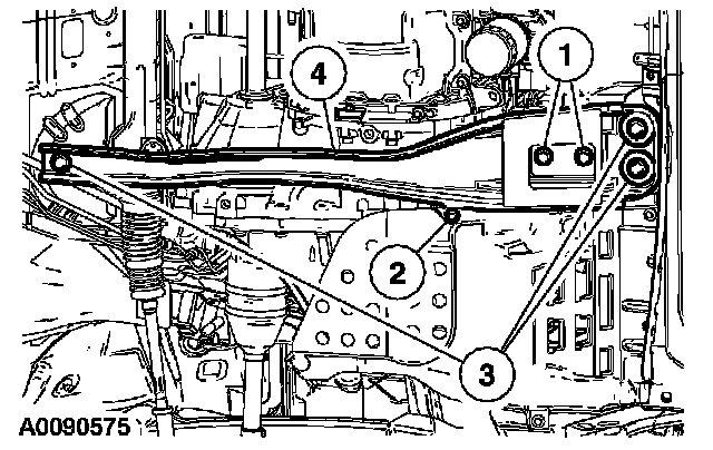 3 Remove the 2 front-to-aft crossmember bolts and nut.