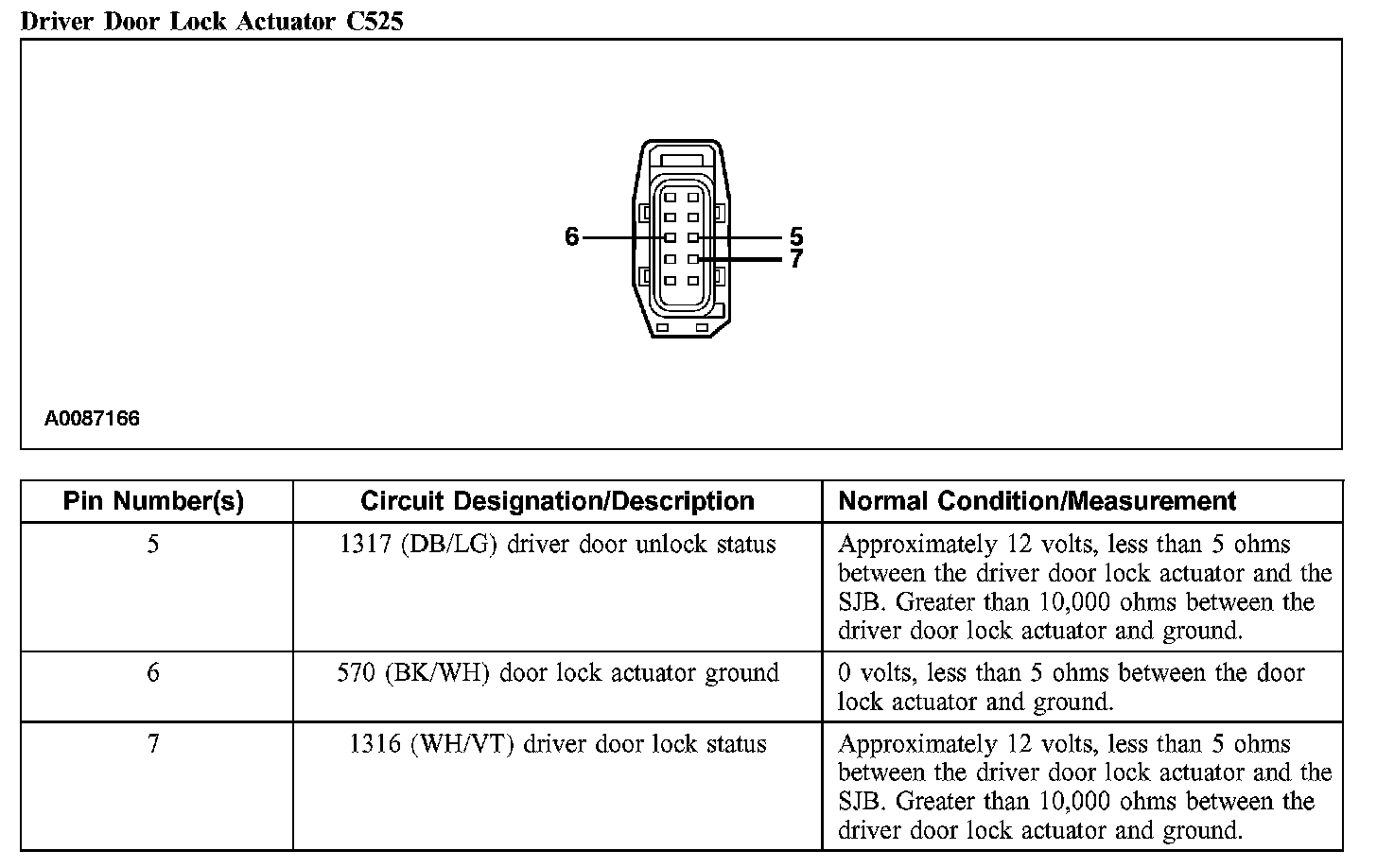 Driver Door Lock Actuator C525:
