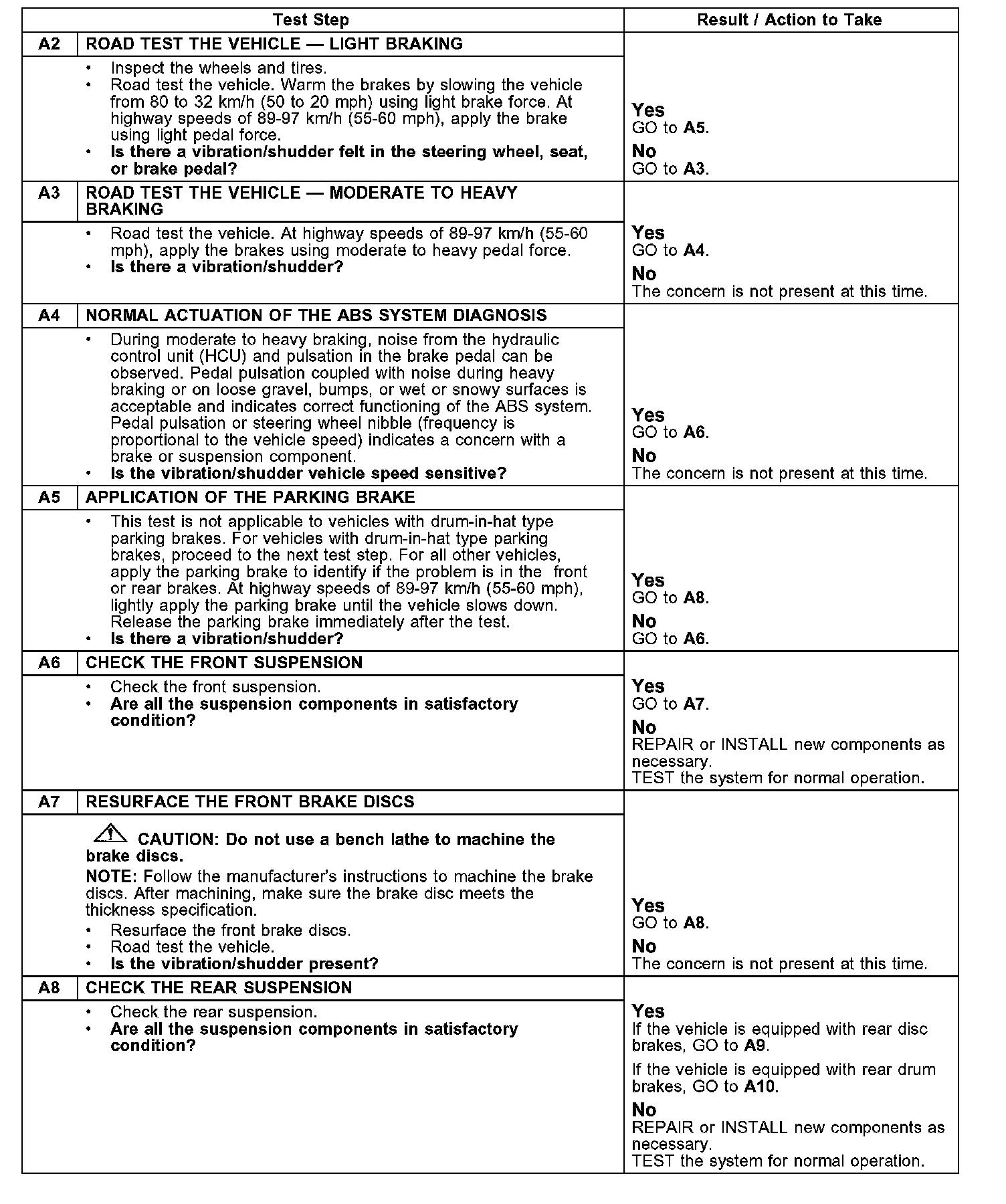 Pinpoint Test A: Vibration When Brakes Are Applied