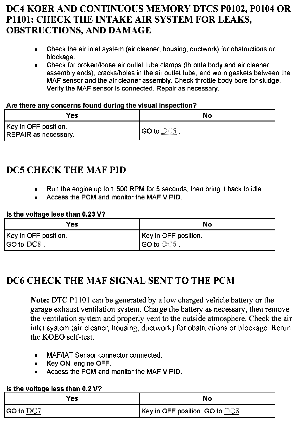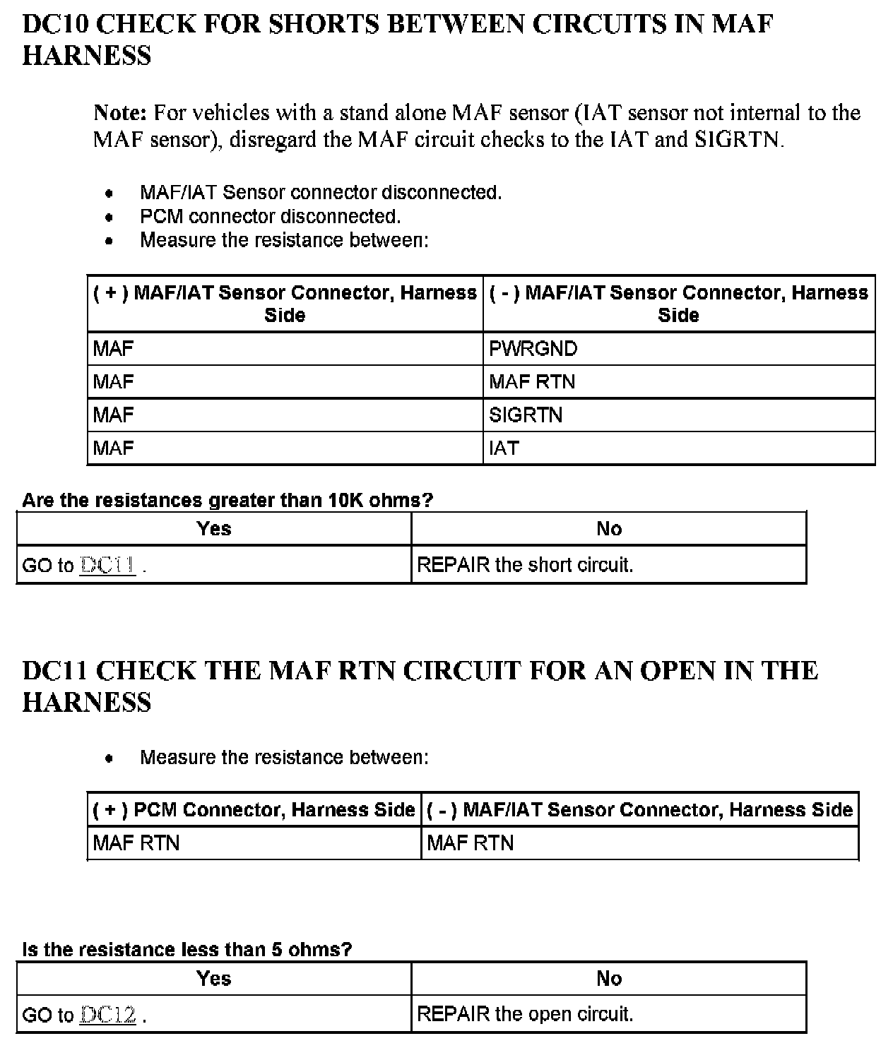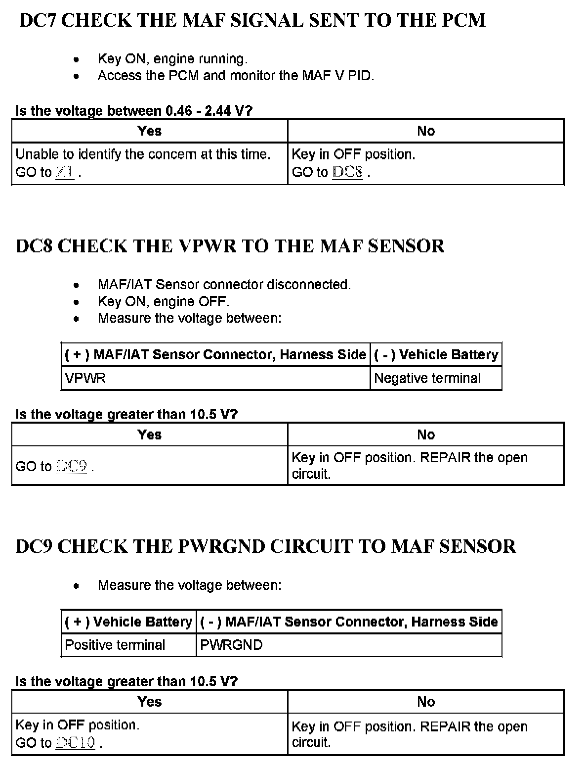 Tests DC: Mass Air Flow (MAF) Sensor