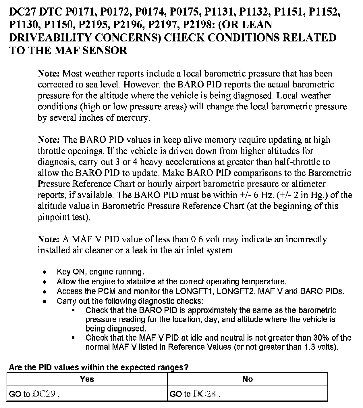 PINPOINT TEST DC: MASS AIR FLOW (MAF) SENSOR