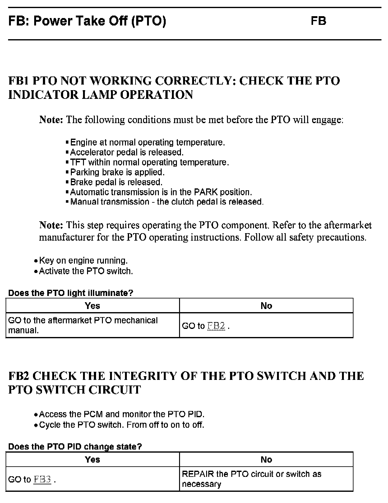 PINPOINT TEST FB: POWER TAKE OFF (PTO)