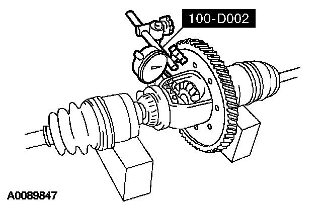 Using the special tool, measure and record the backlash for the differential side gears. Install a new differential if beyond specification.