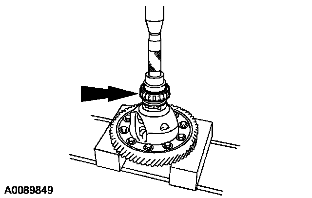 4. CAUTION: Be careful not to crush the bearing while pressing it onto the differential case.