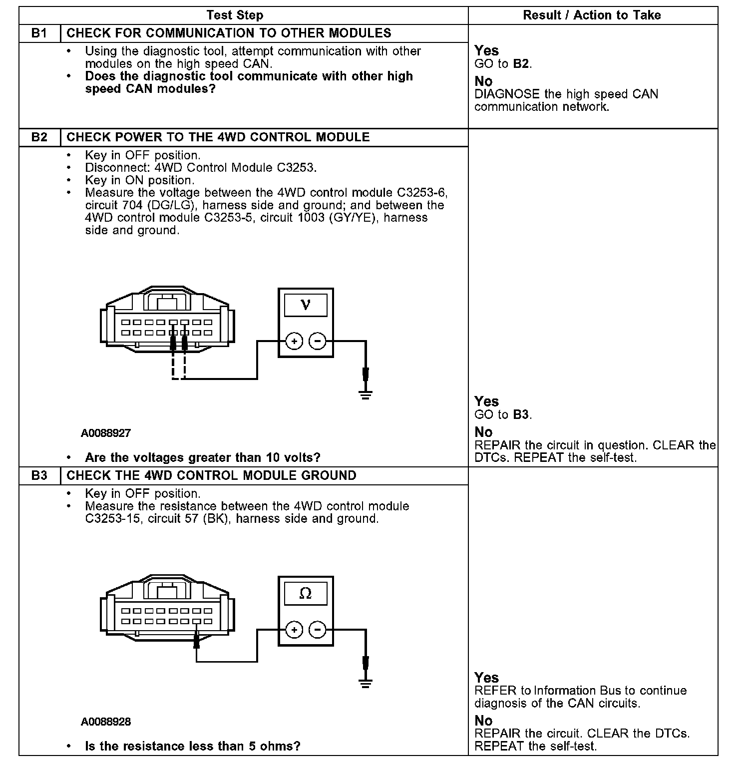 Test B: No Communication With The Four-Wheel Drive (4WD) Control Module