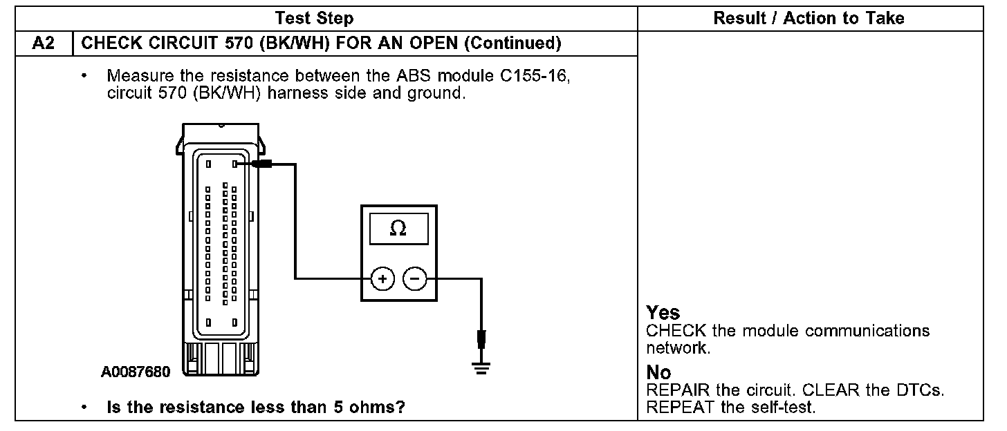 Pinpoint Test A: No Communication With the Anti-Lock Brake System (ABS) ModuleTest A1-A2: