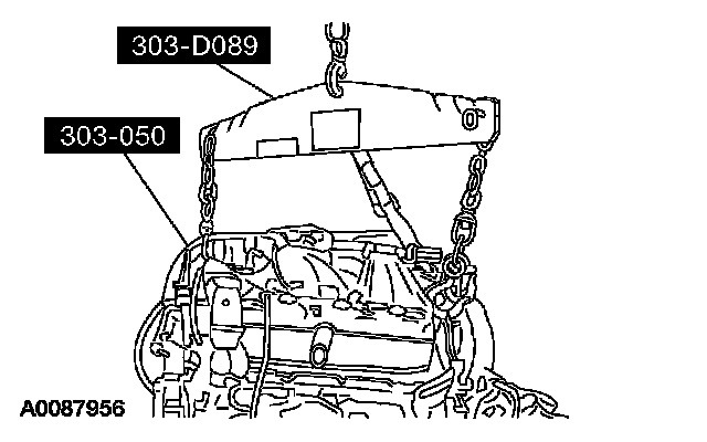 Using the special tools, secure the engine to the powertrain lift.