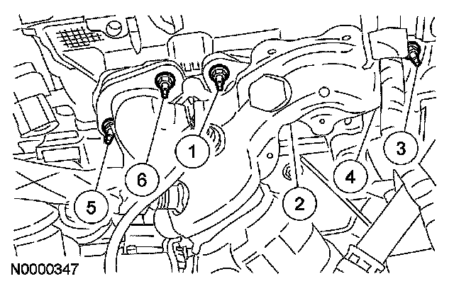 45. Tighten the EGR tube-to-RH catalytic converter fitting to 40 Nm (30 ft. lbs.).