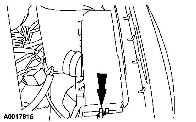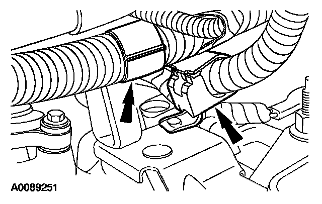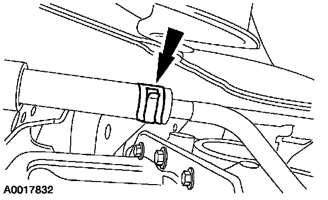 ^ Attach the vacuum tube retainer to the transmission fill tube.