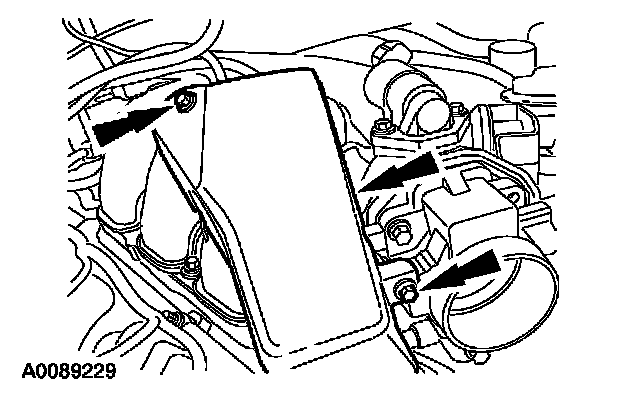 44. Position the accelerator cable snow shield and install the bolts.