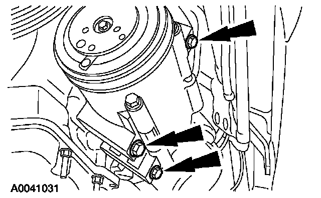 49. Position the power steering pump and install the bolts.