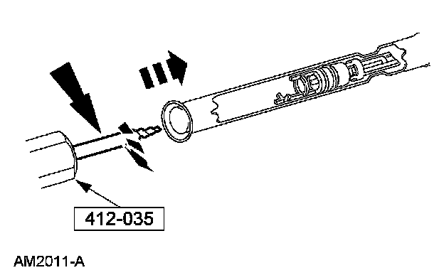 4. If the evaporator core orifice is intact, engage the special tool. Hold the T-handle stationary while rotating the tool body to remove the evaporator core orifice.