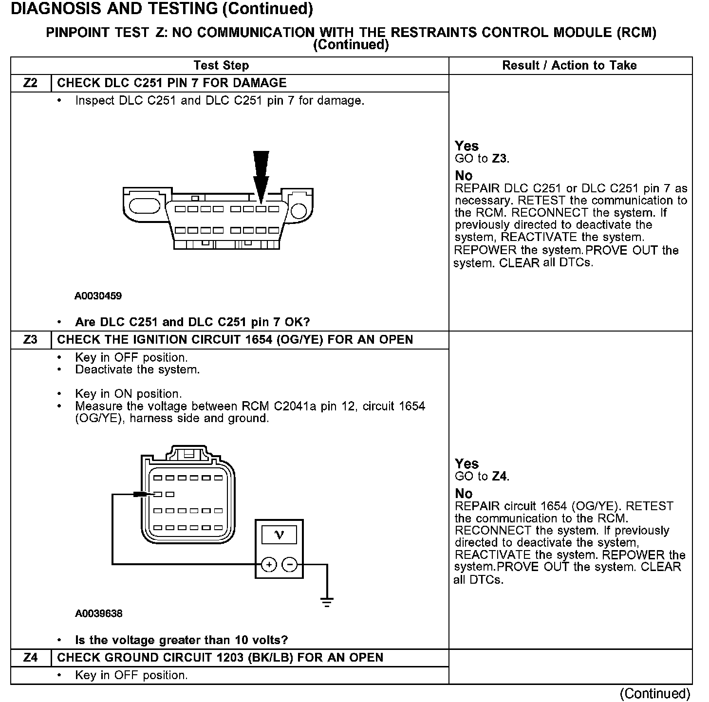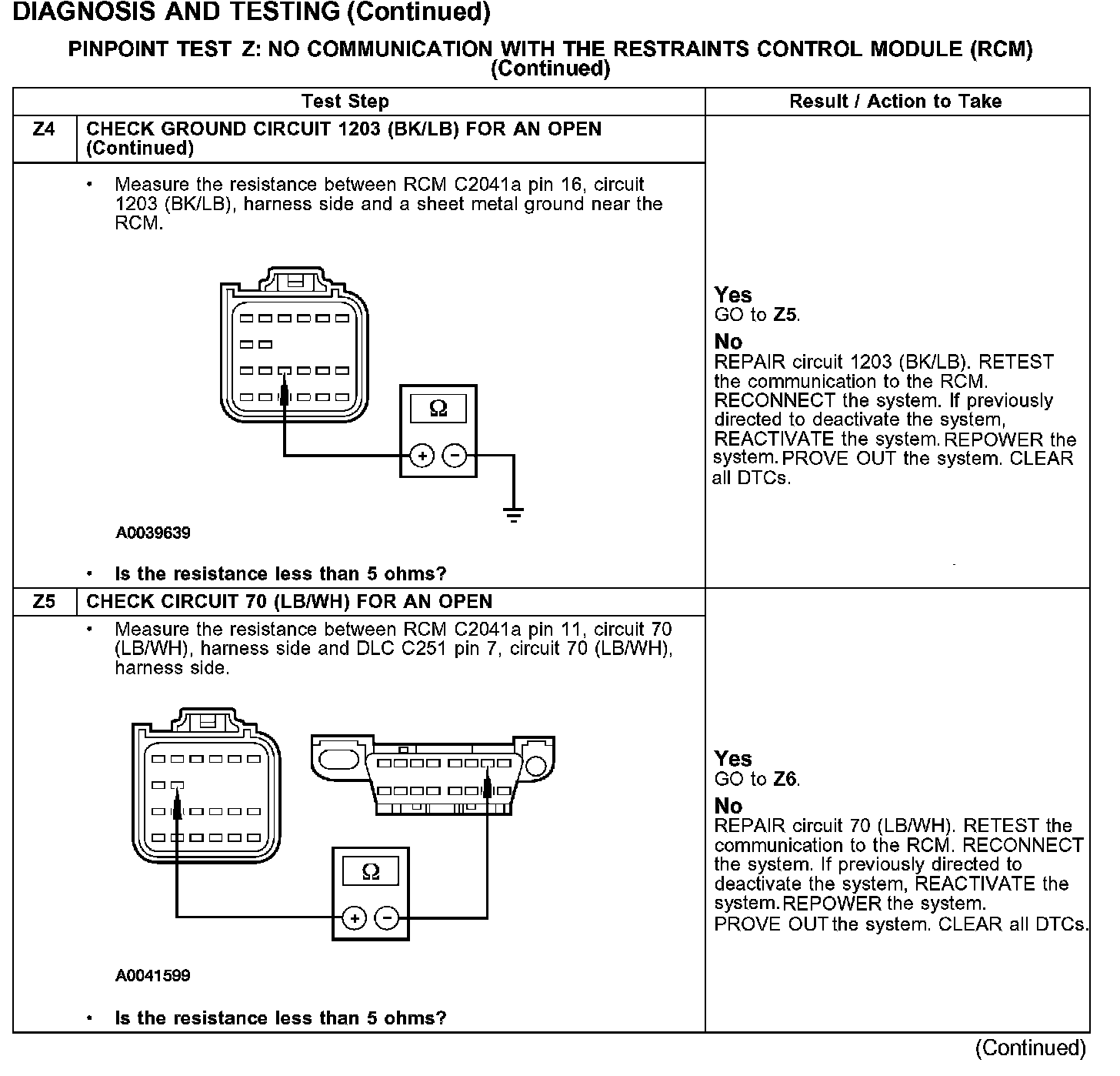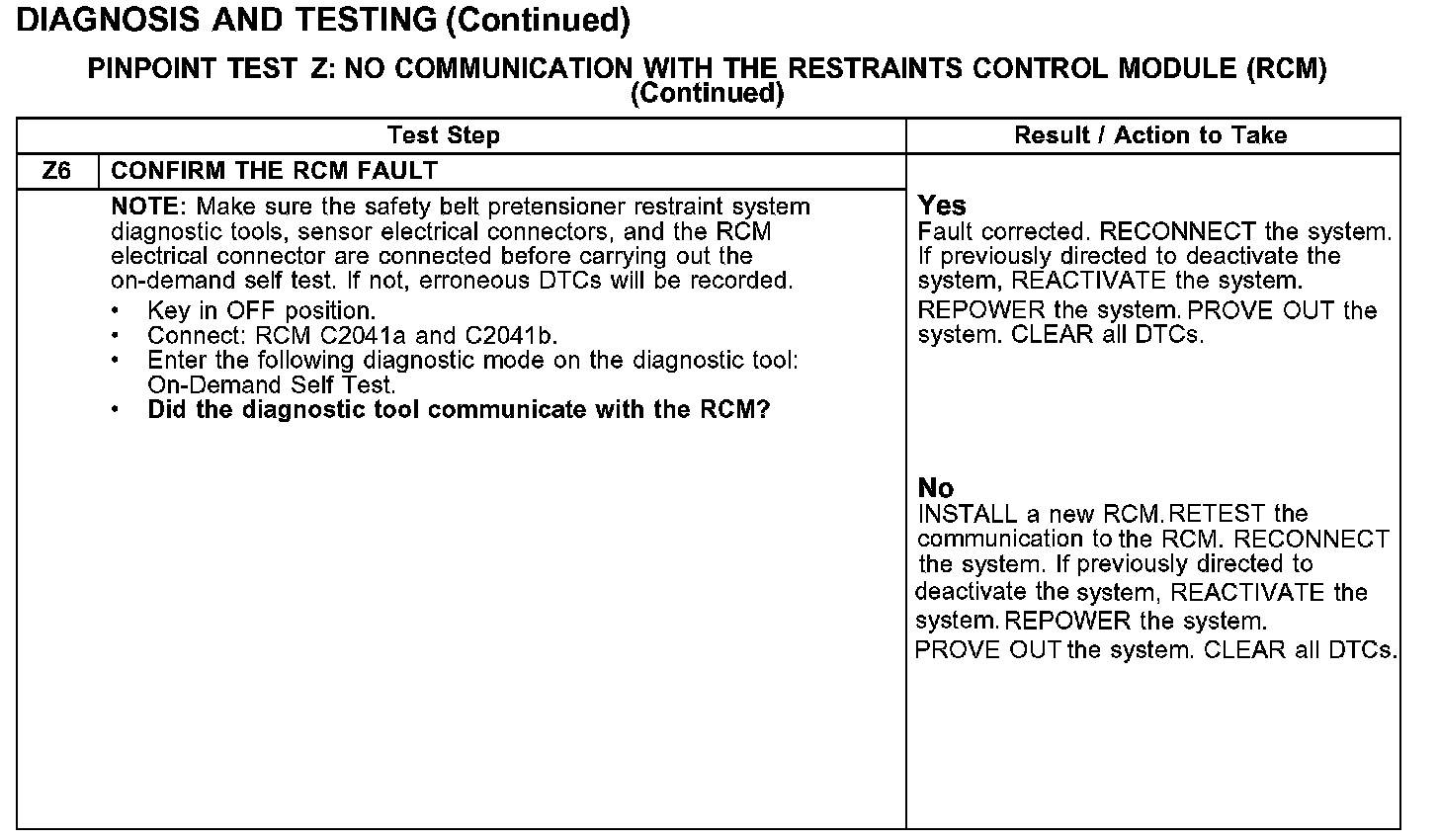 Test Z: No Communication With The Restraints Control Module (RCM)