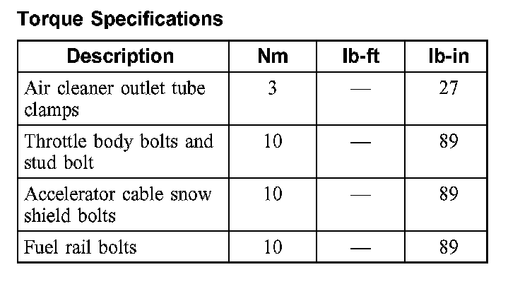 Torque Specifications: