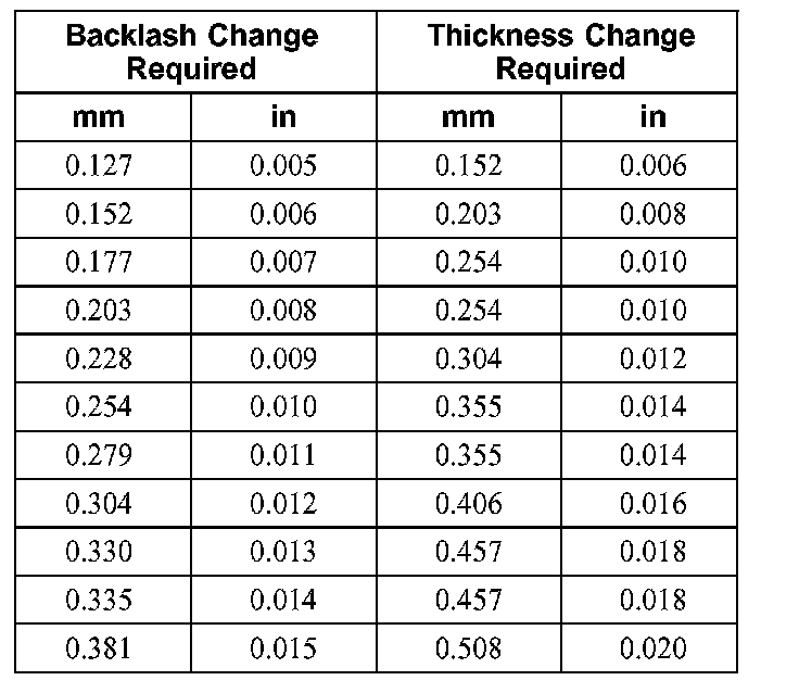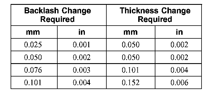 Rear Axle Backlash Shim Adjustment Table