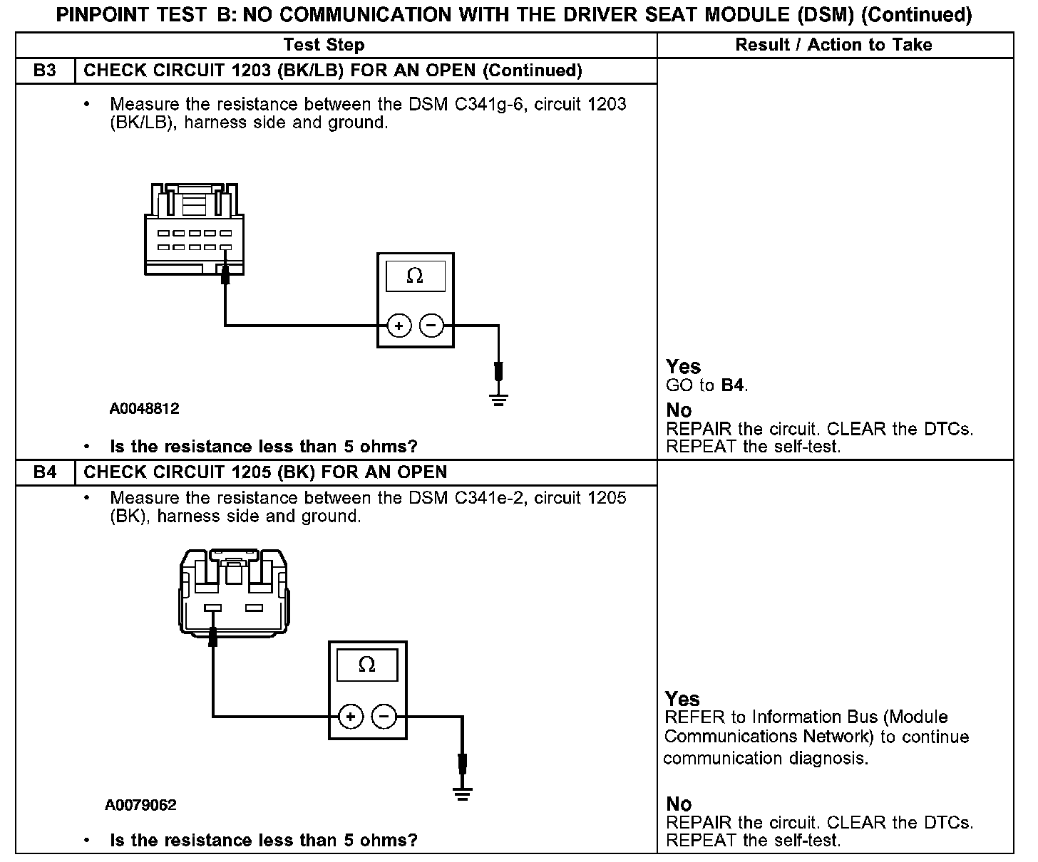 PINPOINT TEST B: NO COMMUNICATION WITH THE DRIVER SEAT MODULE (DSM)B1-B3: