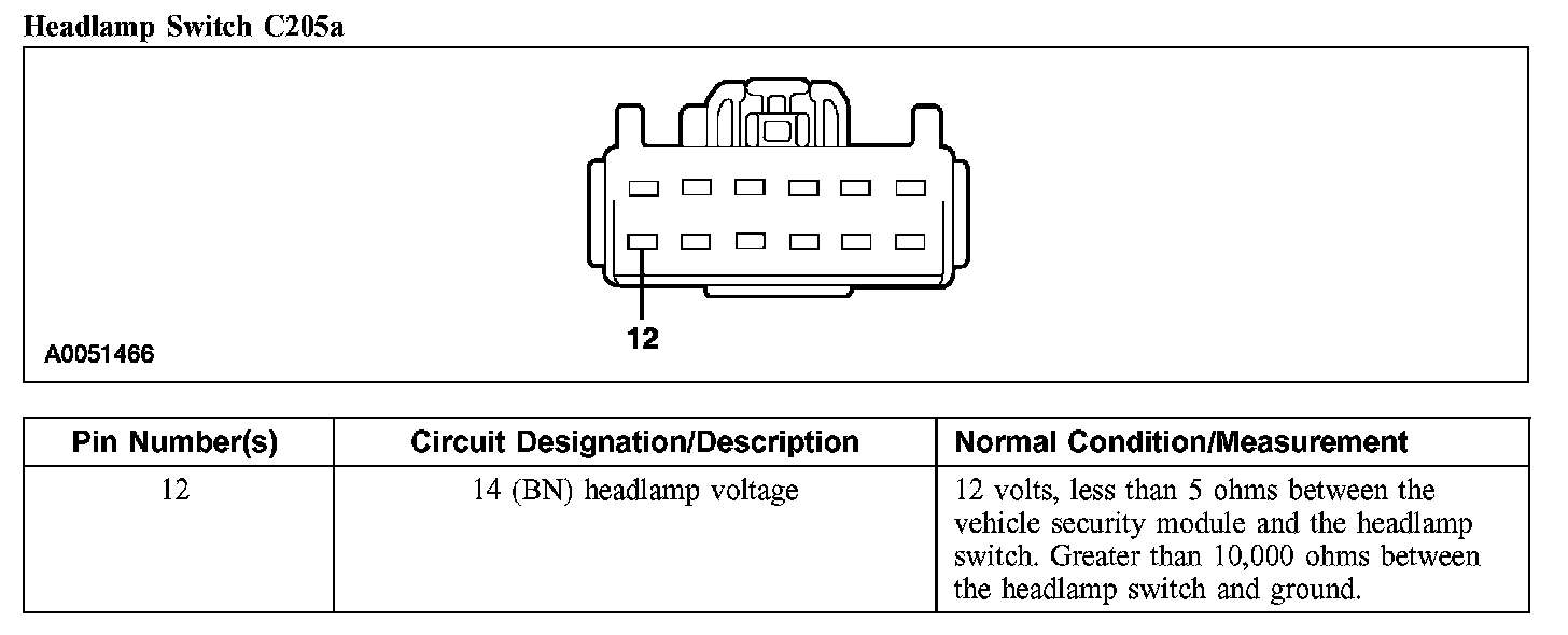 Headlamp Switch C205a: