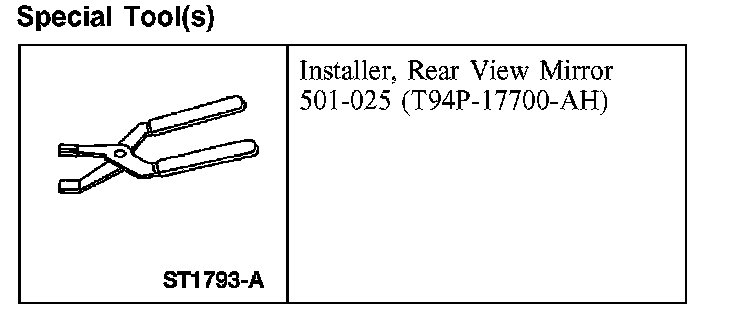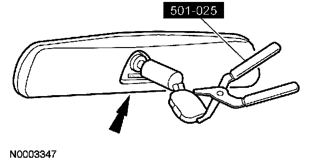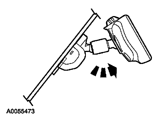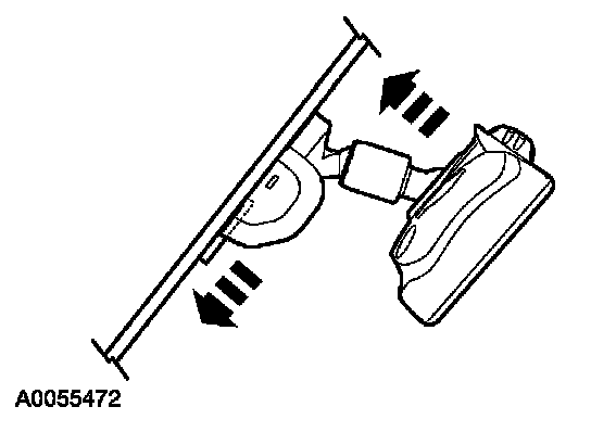 4. Place the interior rear view mirror on the mirror windshield bracket. Using the special tool, press the mirror in place until fully seated.